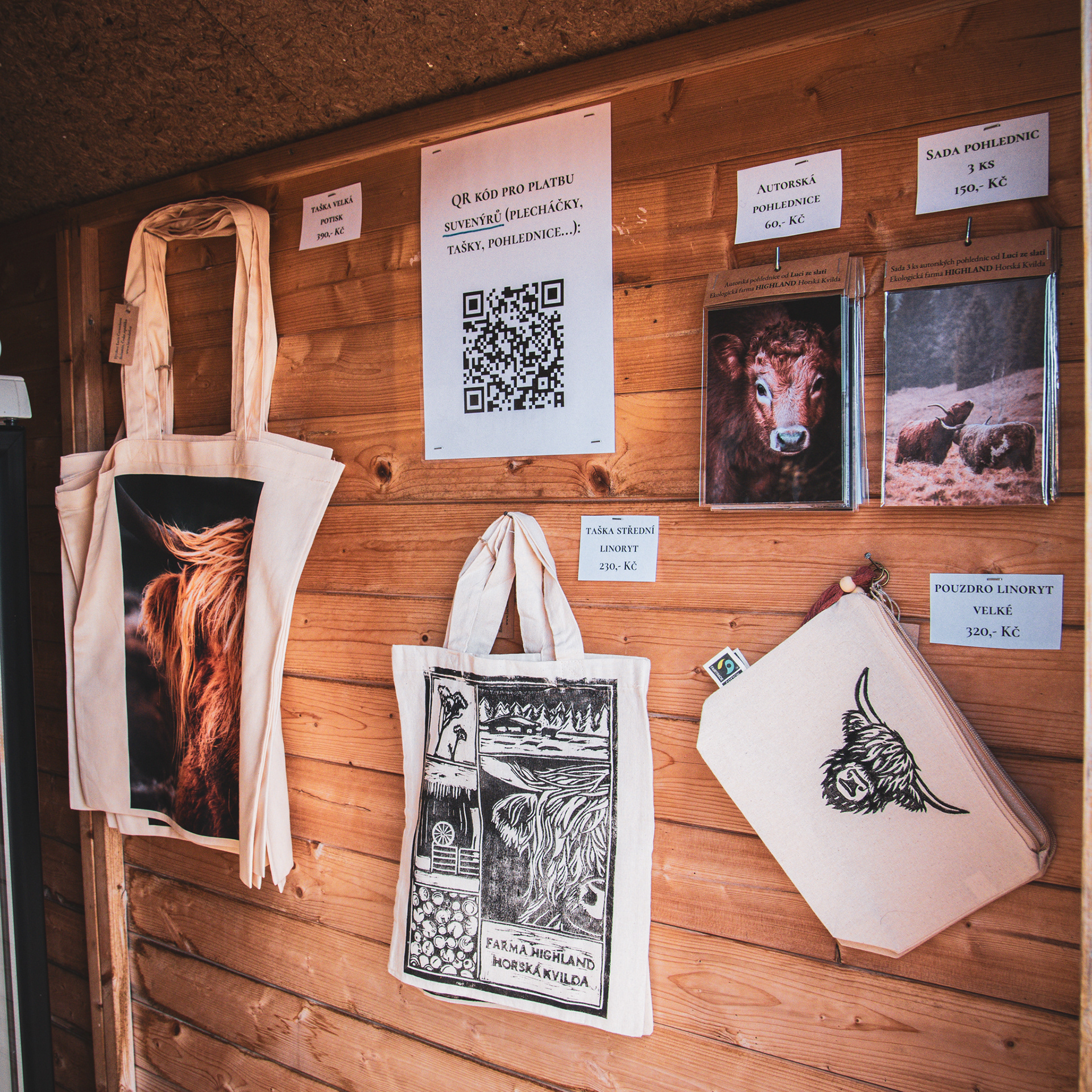 Tvořím produkty z vlastních fotografií a linorytových motivů – plecháčky, tašky a printy, které vznikají z míst, kde skutečně žiju.